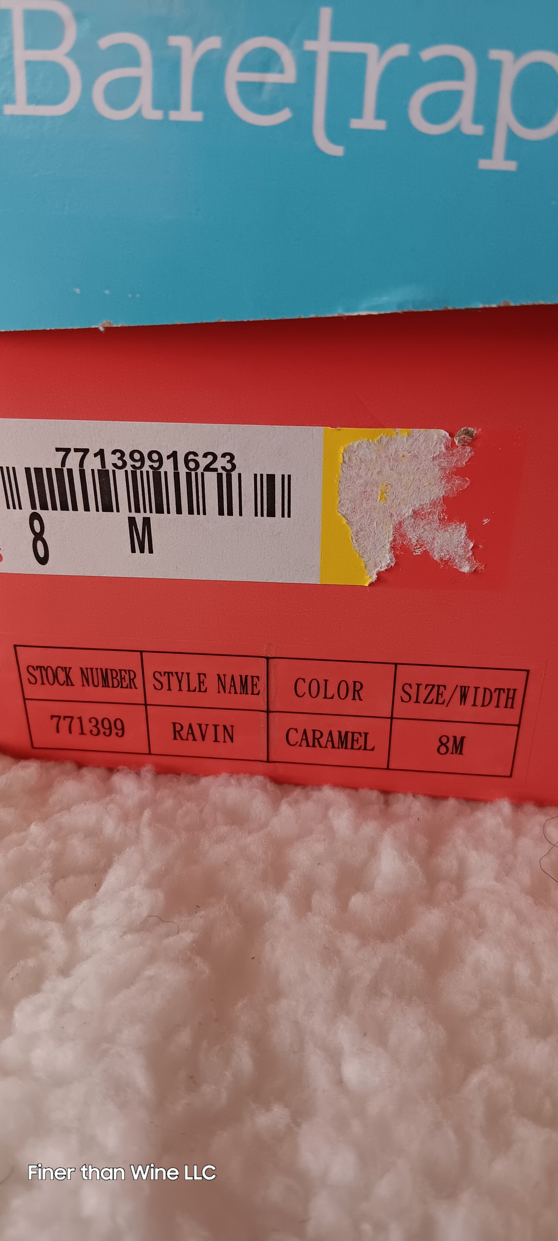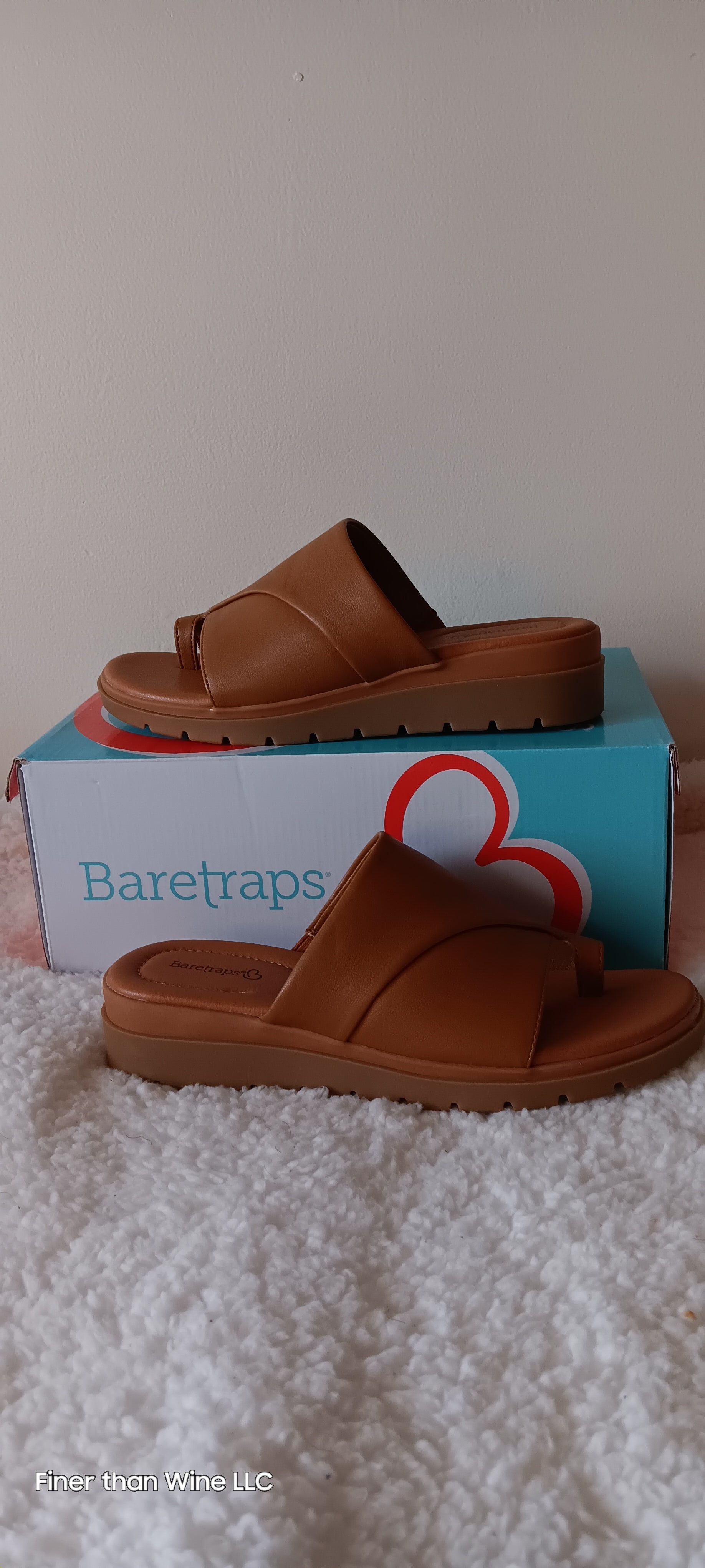 Caramel colored Baretraps Ravin style toe slide sandals. Size 8 M