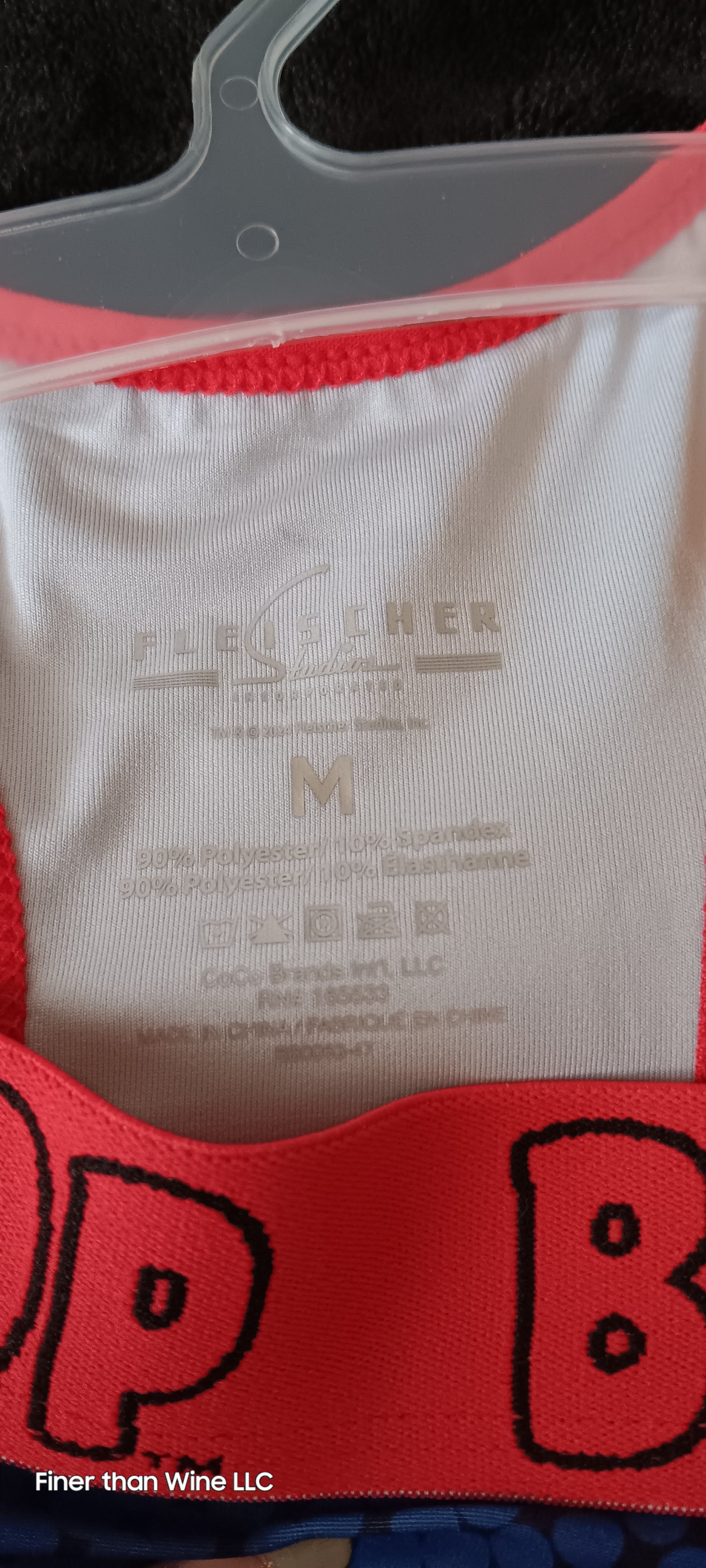 Red, blue, and black Betty Boop sports bra and boy shorts underwear. Size M