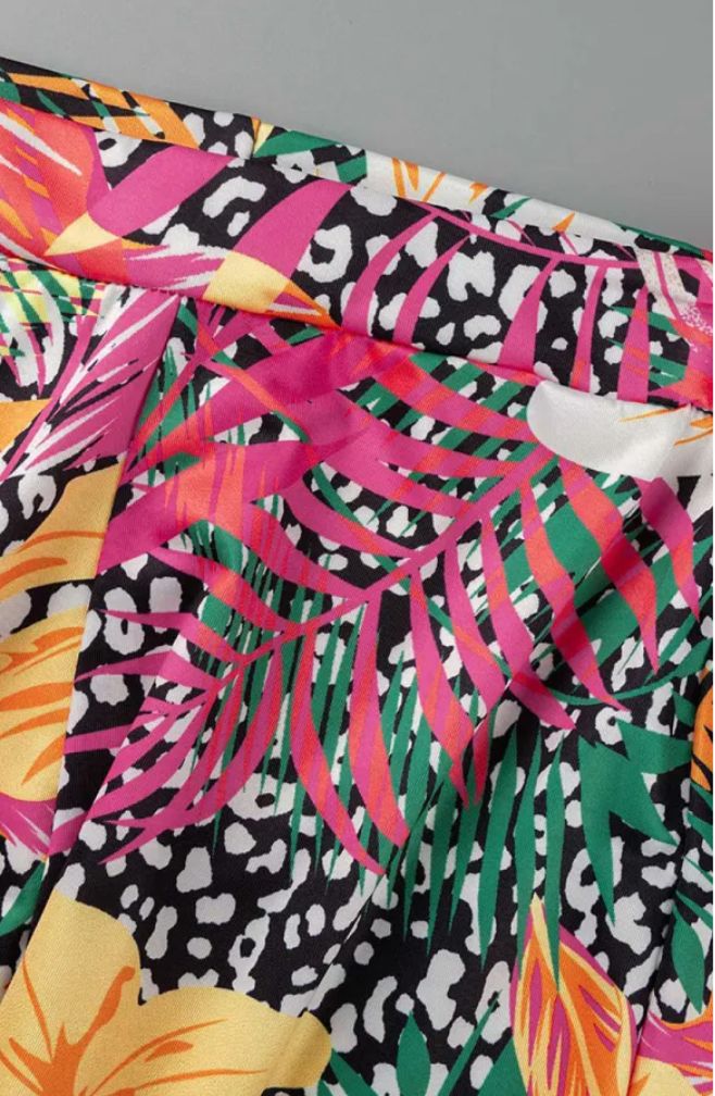 Bright multi-color feather print 2 Piece Halter Short Set. Size XL