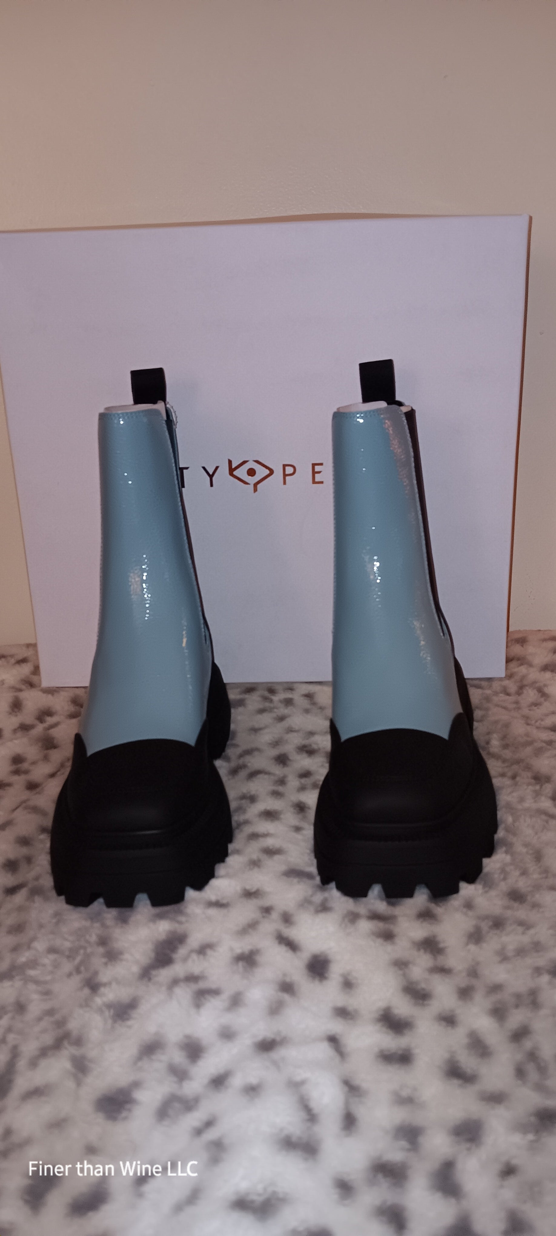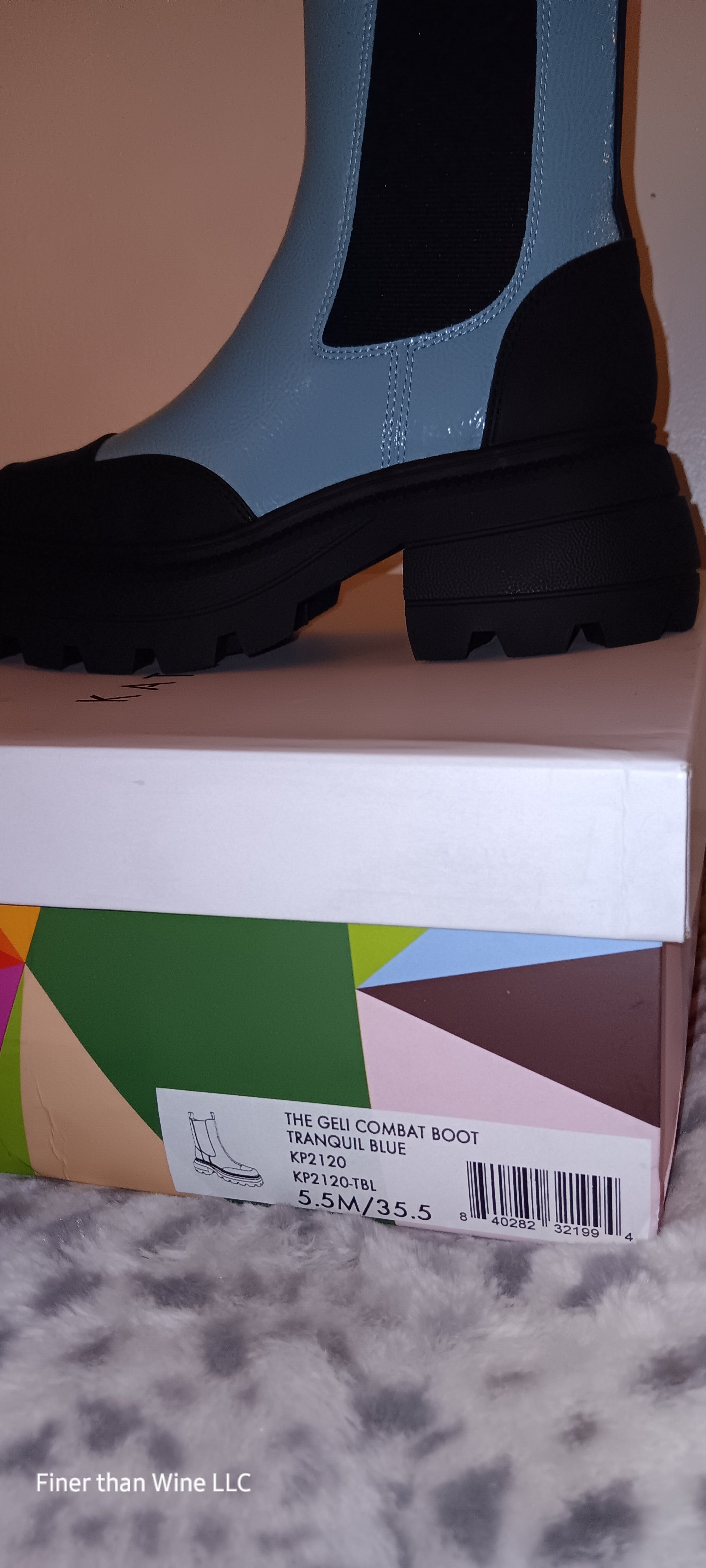 New in box. Katy Perry The Geli Combat Boot in tranquil blue and black. Women and big kids size 5.5.