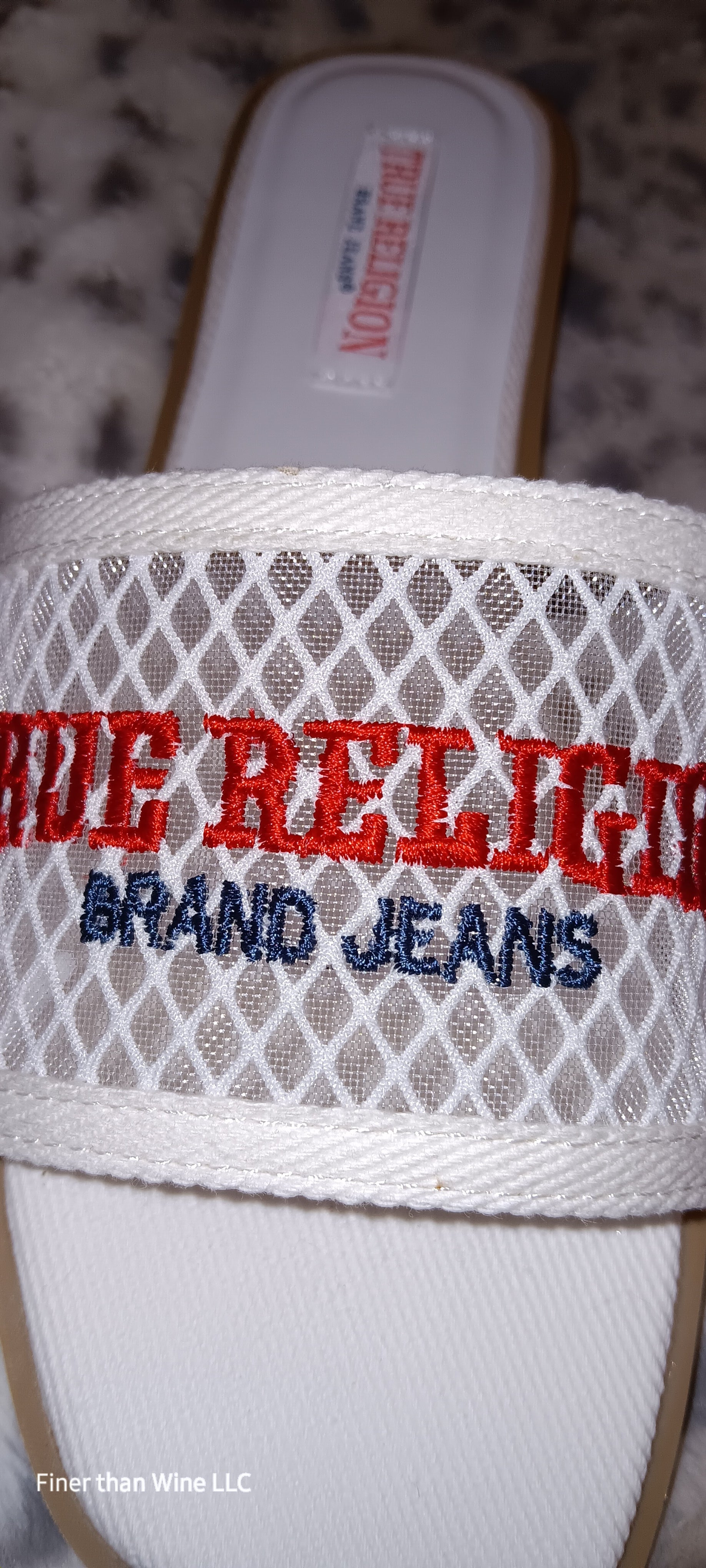 New in box. Women's True Religion Brat White Mesh Slides. Size 8